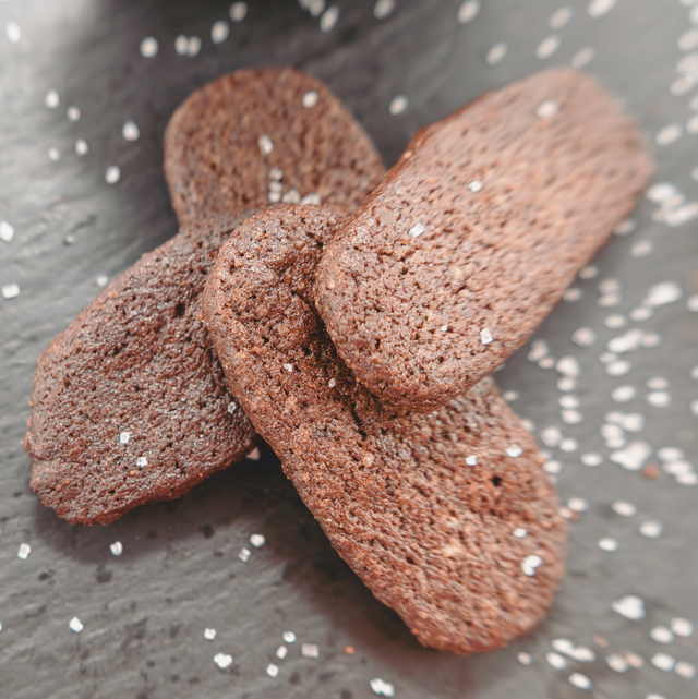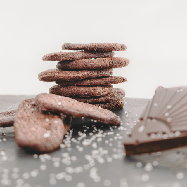 Ingredientes: Farinha de trigo, açúcar, manteiga, chocolate puro.